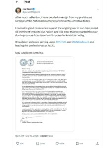 The resignation of Joe Kent, former Director of the National Counterterrorism Center, represents more than a personnel change. It is a structural break inside the national security framework.
