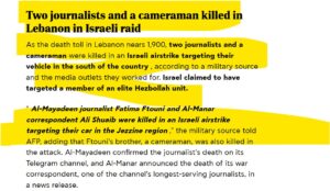 Israel, however, claimed that Ali Shuaib was not merely a journalist, but a member of the al-Radwan force, an elite Hezbollah unit, operating “under the cover of a journalist” and “systematically exposing the positions of Israeli soldiers operating in southern Lebanon.”