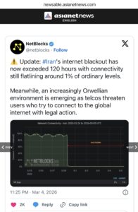 Another underreported development is the near-total collapse of Iran’s internet connectivity.